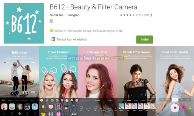 Aplikasi kamera Korea paling populer adalah B612. Aplikasi ini telah cukup lama berada di Google Play Store yaitu sejak 9 Oktober 2014 dan telah diunduh lebih dari 500 juta pengguna, Wow amazing.